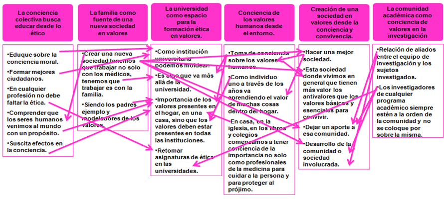 conciencia colectiva para las universidades” fundada en concepciones como: los valores humanos desde los principios bioéticos, desde la formación en