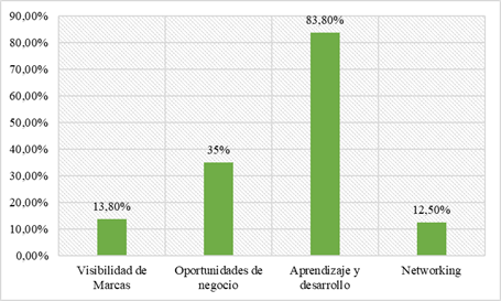 la capacitación y las oportunidades de negocio. Los resultados indican una