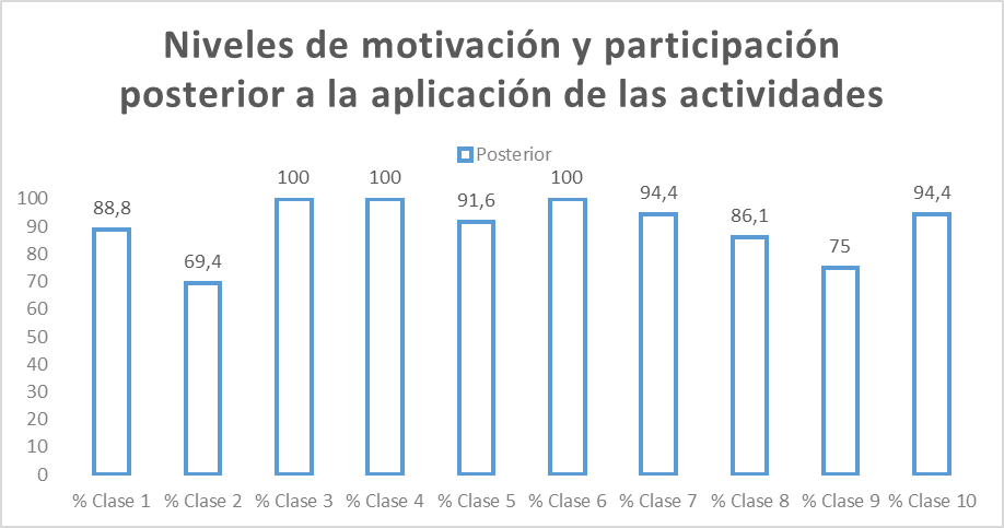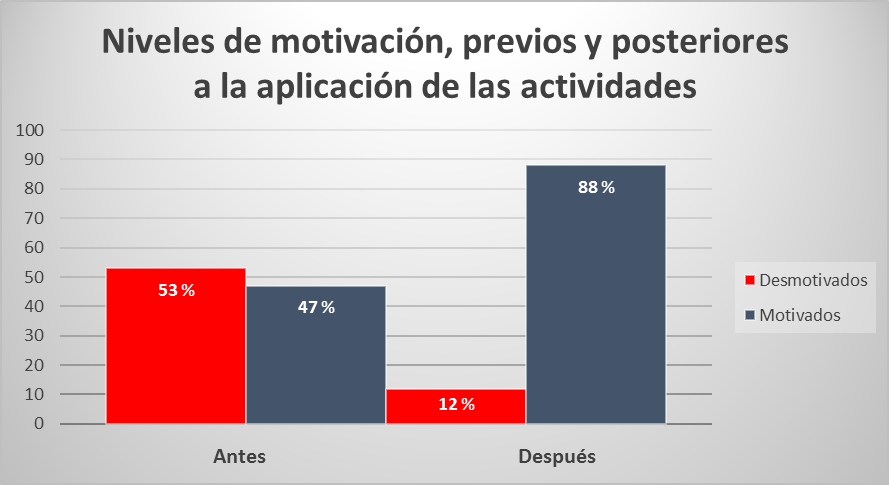 efectividad pues se elevó al 88% el nivel de motivación y participación activa a un 84% y consciente del alumnado al igual